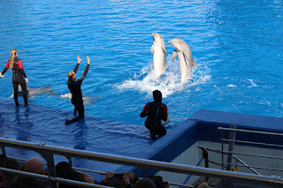 and many people queuef up for it. In the aquarium we watched a dolphin show and